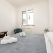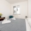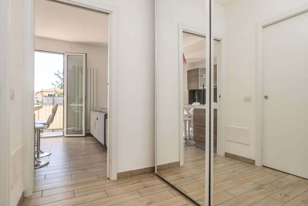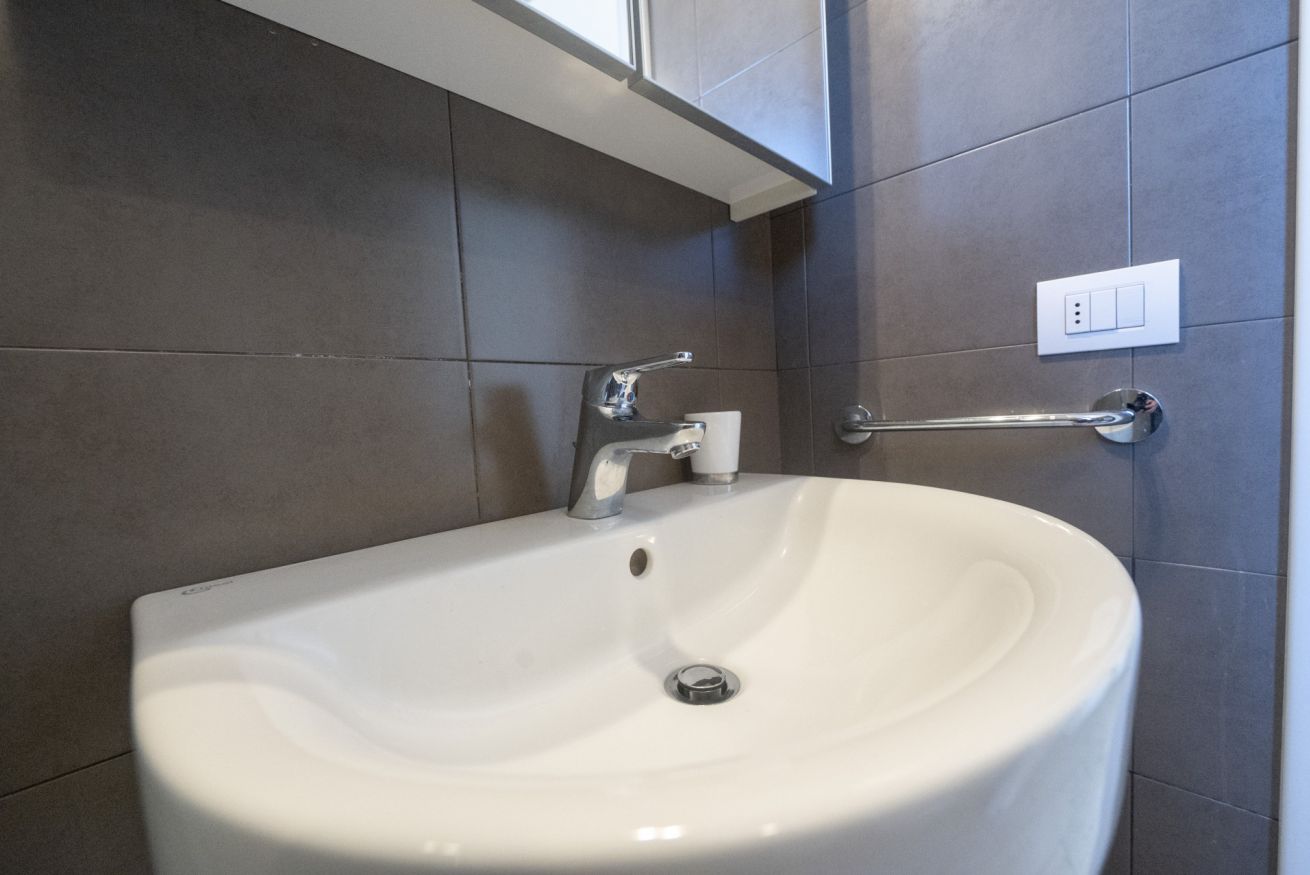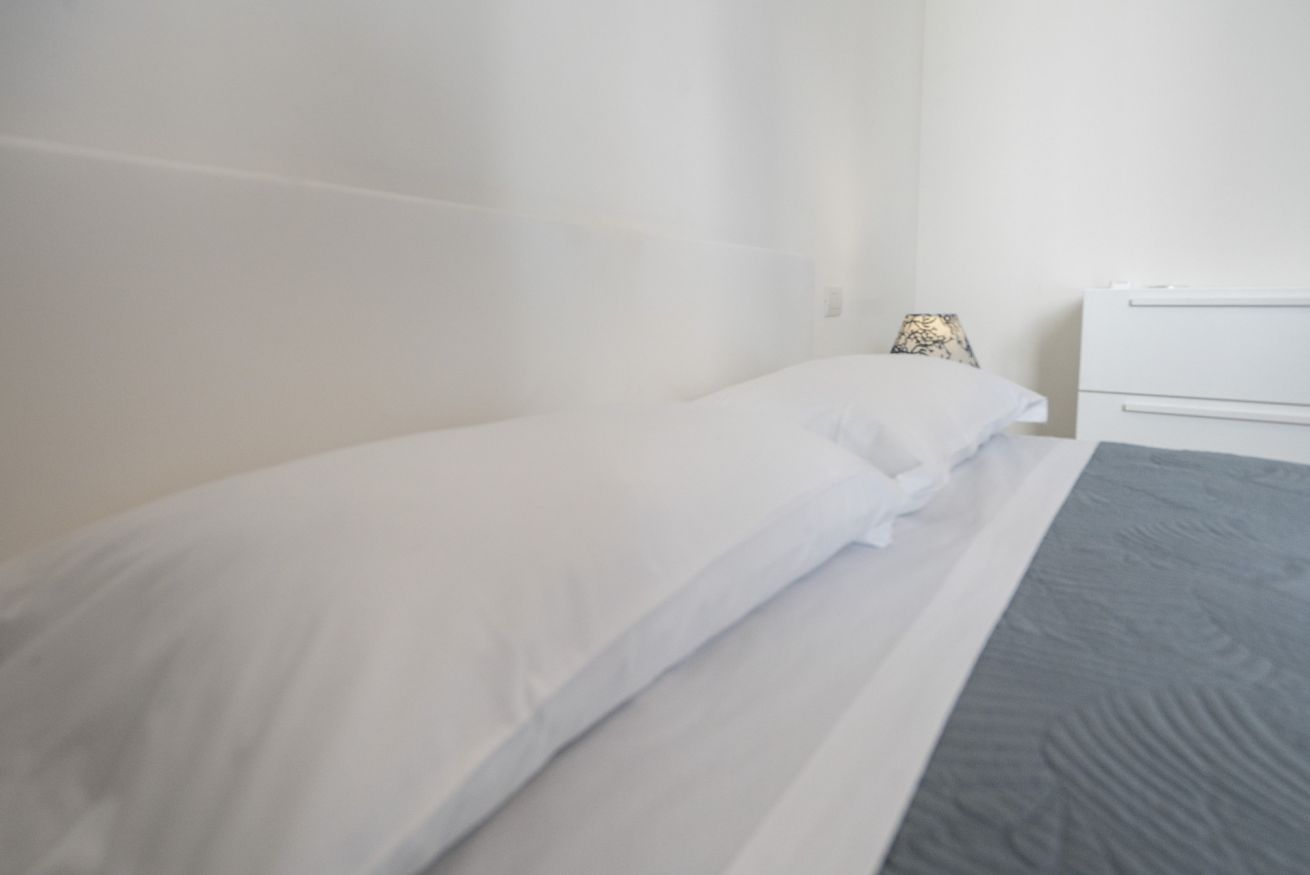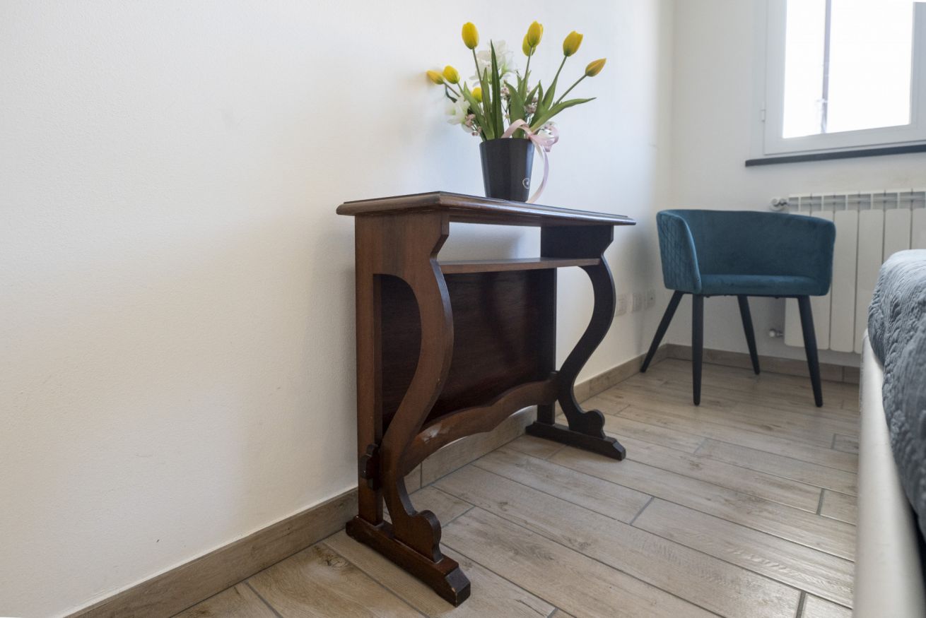 La camera matrimoniale è silenziosa e confortevole, ideale per un riposo di qualità. Il balcone offre uno spazio esterno pratico per una pausa o per arieggiare gli ambienti.