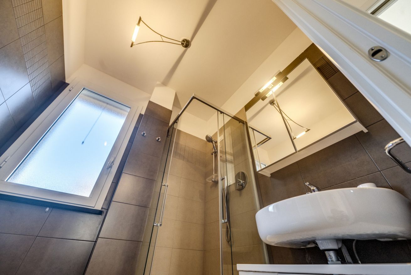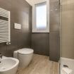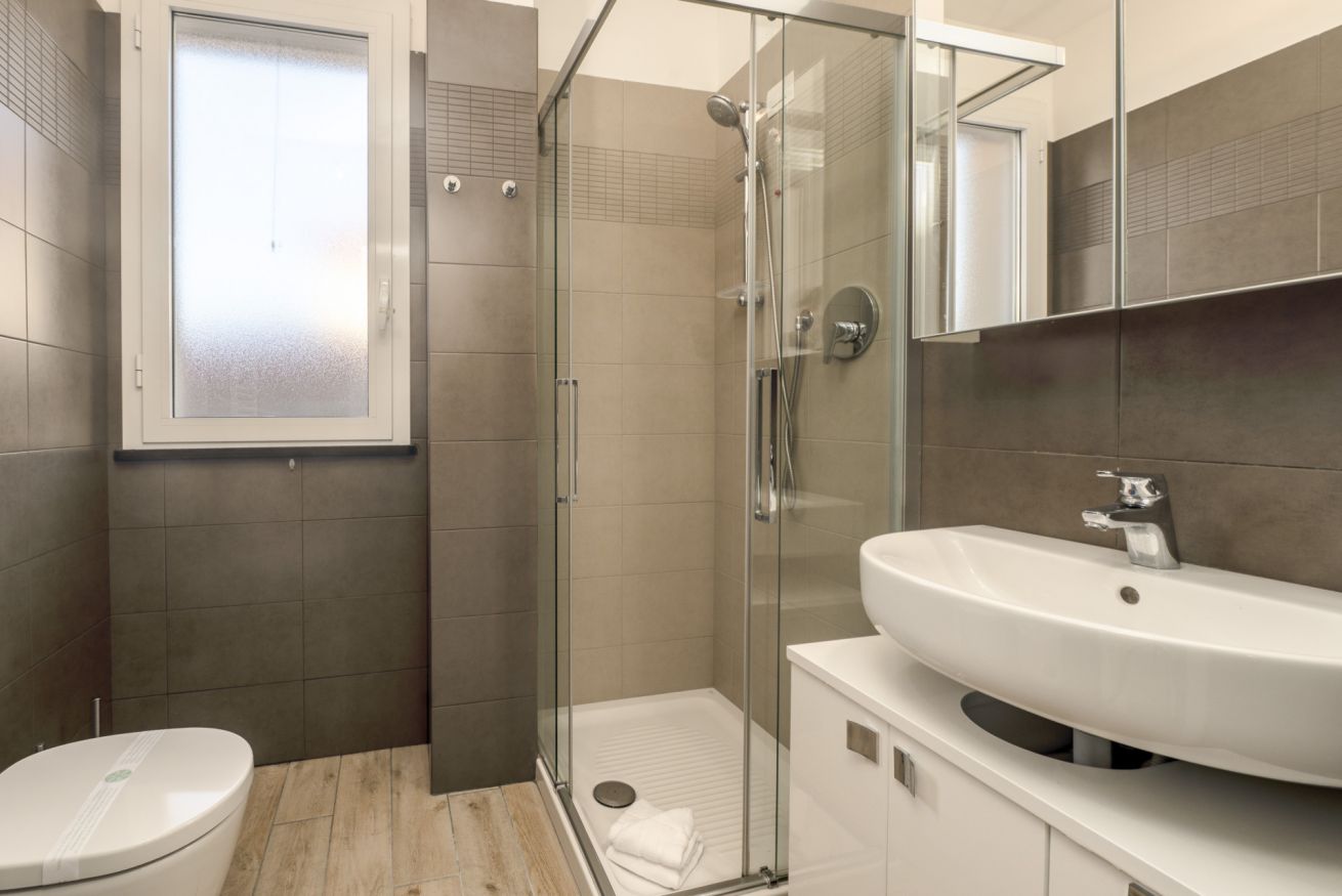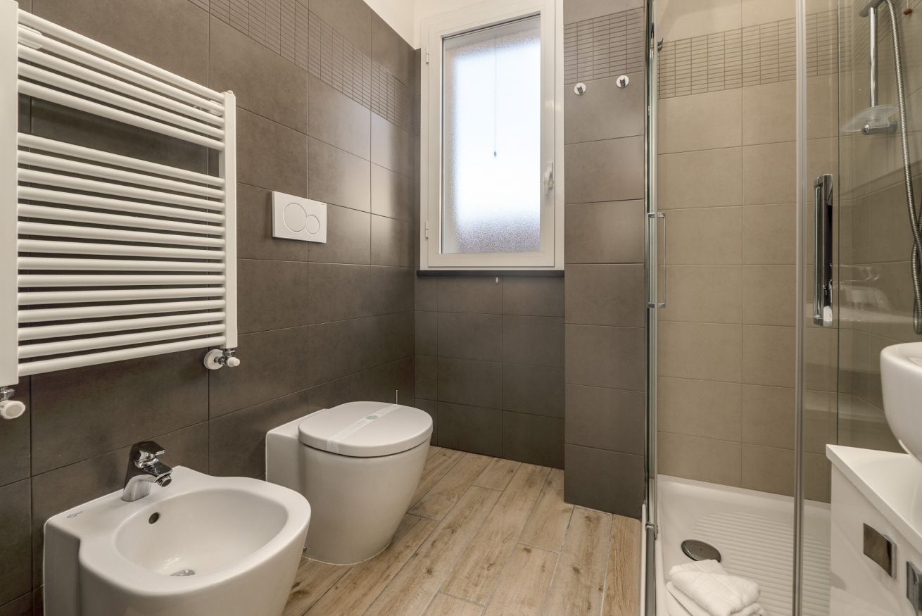 Bagno con doccia, bidet e finestra