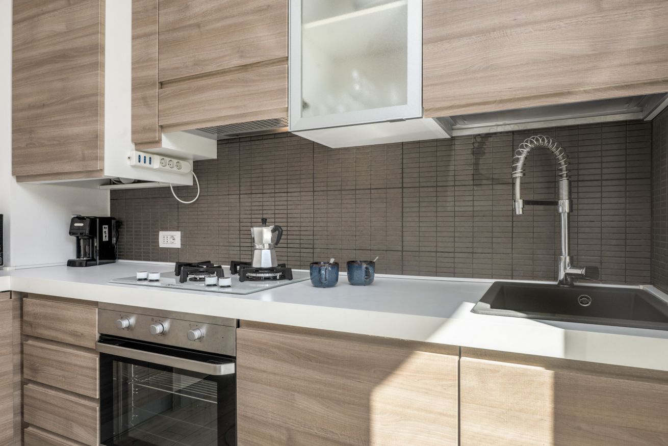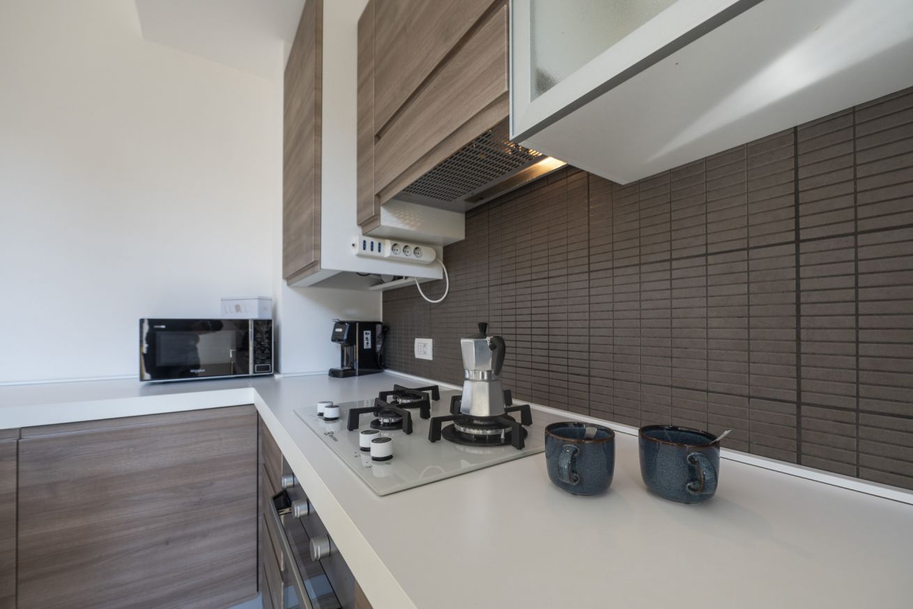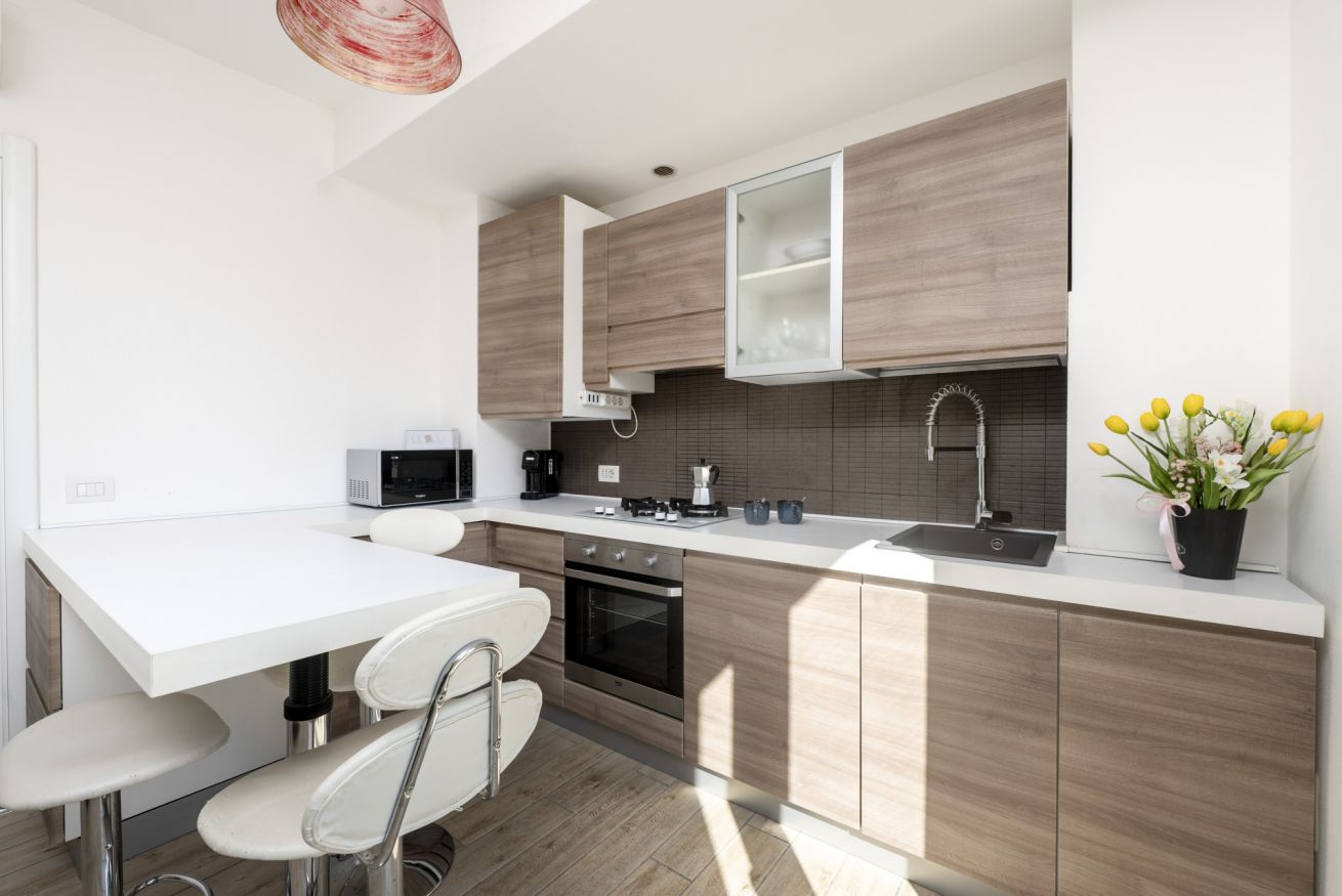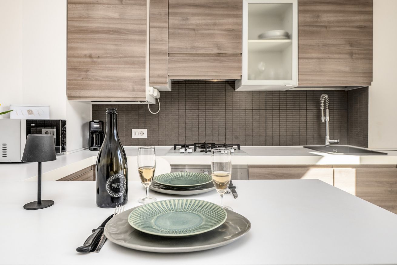 Cucina completamente attrezzata (forno, microonde, lavastoviglie, macchina caffè)