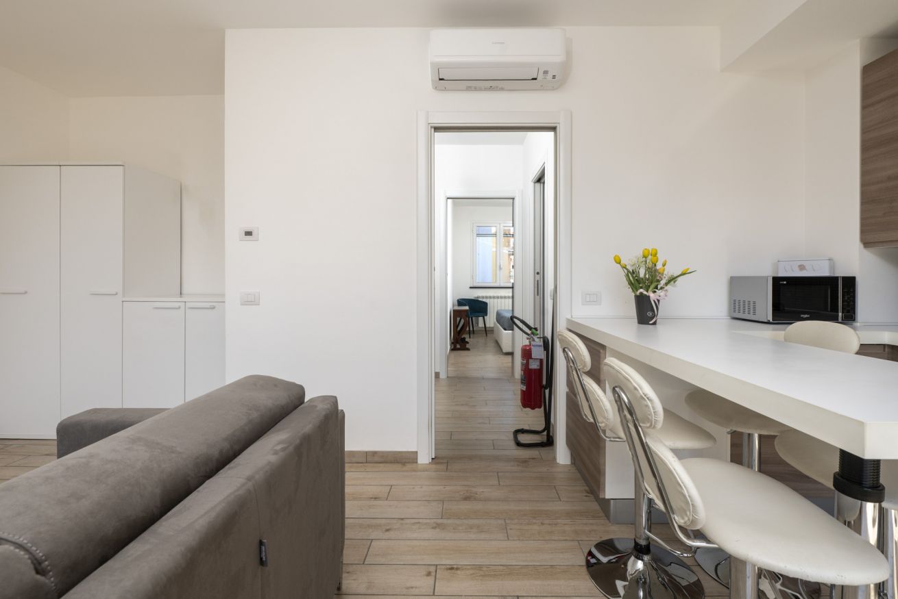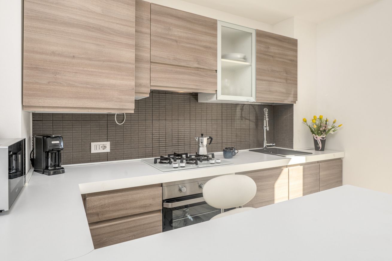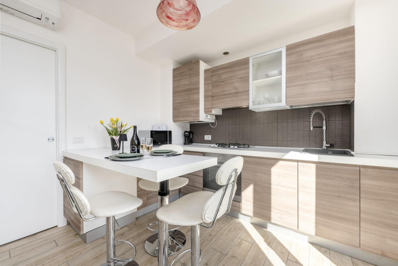 Gli ambienti sono moderni, ordinati e ben illuminati, progettati per offrire comfort e praticità sia per brevi soggiorni che per vacanze più lunghe.
