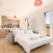 Soggiorno open space con divano letto