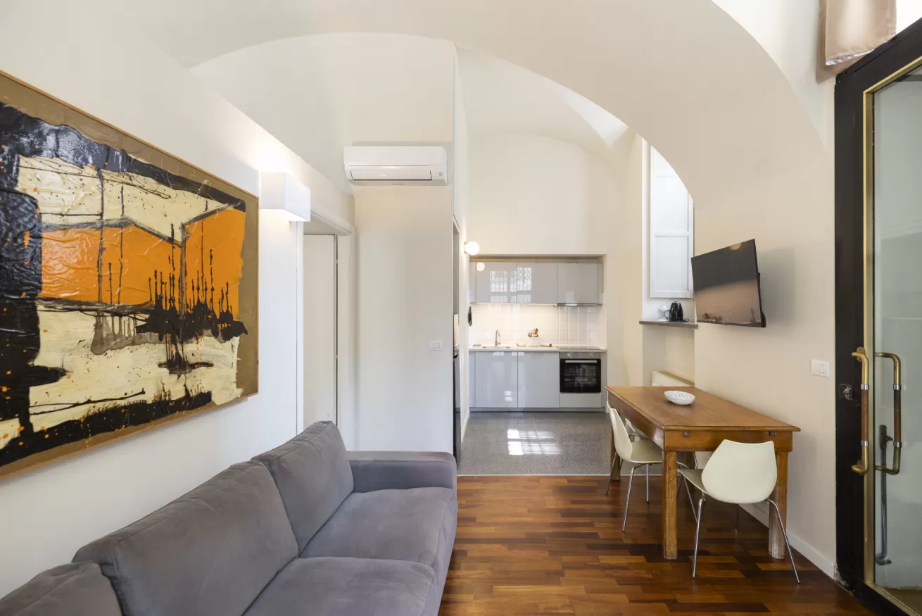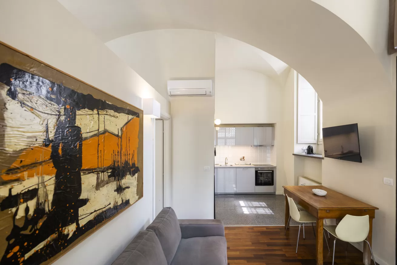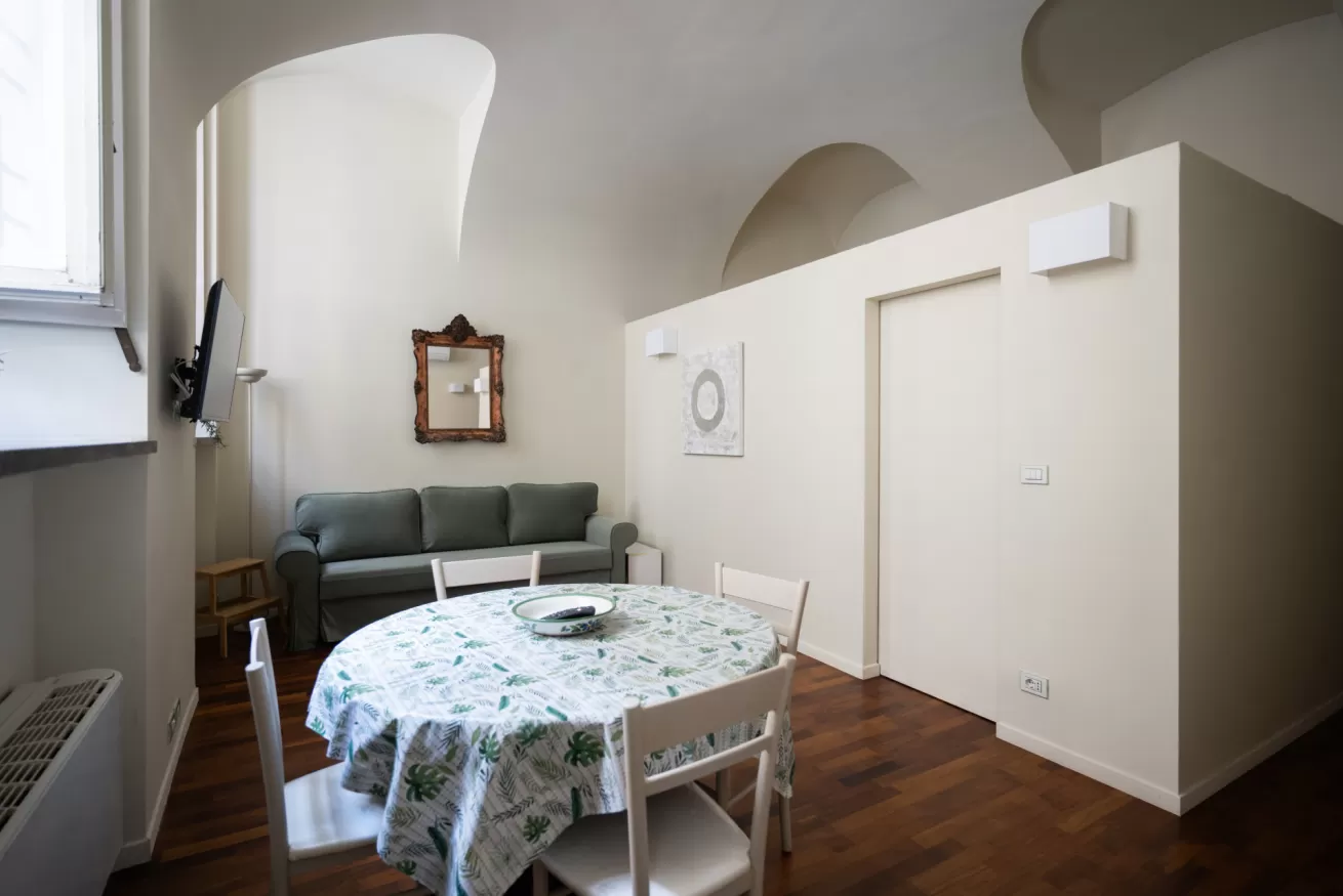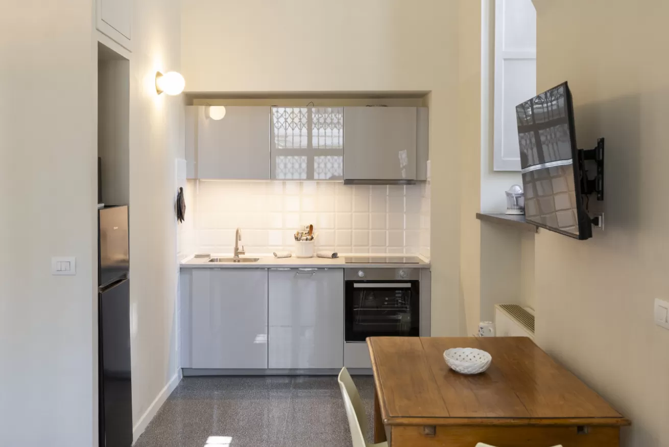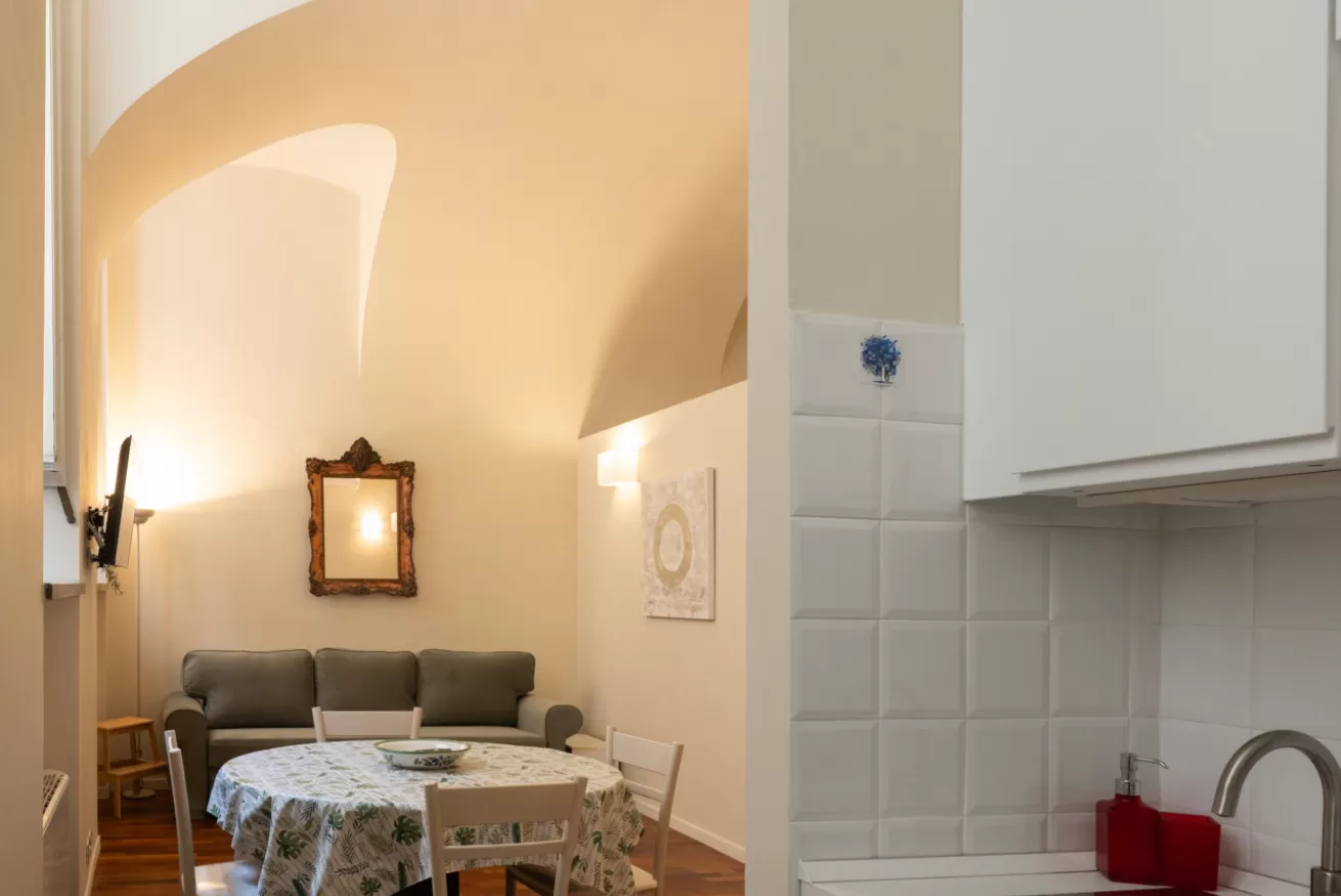 The kitchen is fully equipped with everything you need to prepare delicious and practical meals, while the two modern and functional bathrooms ensure comfort and practicality. The location on the ground floor allows easy access and a quiet atmosphere, immersed in a historical and fascinating context.