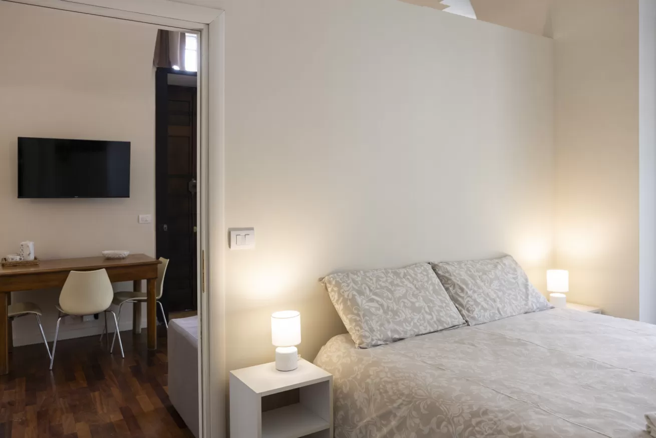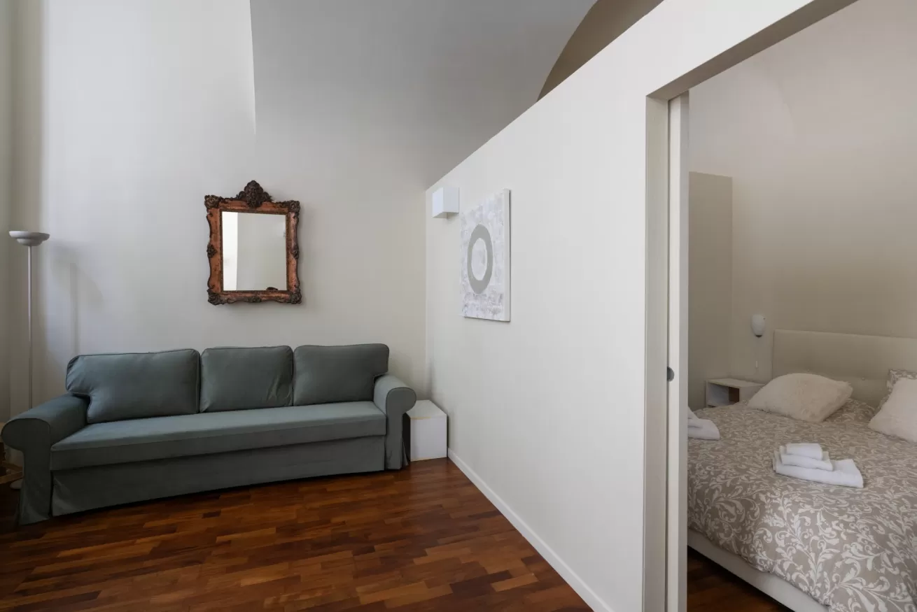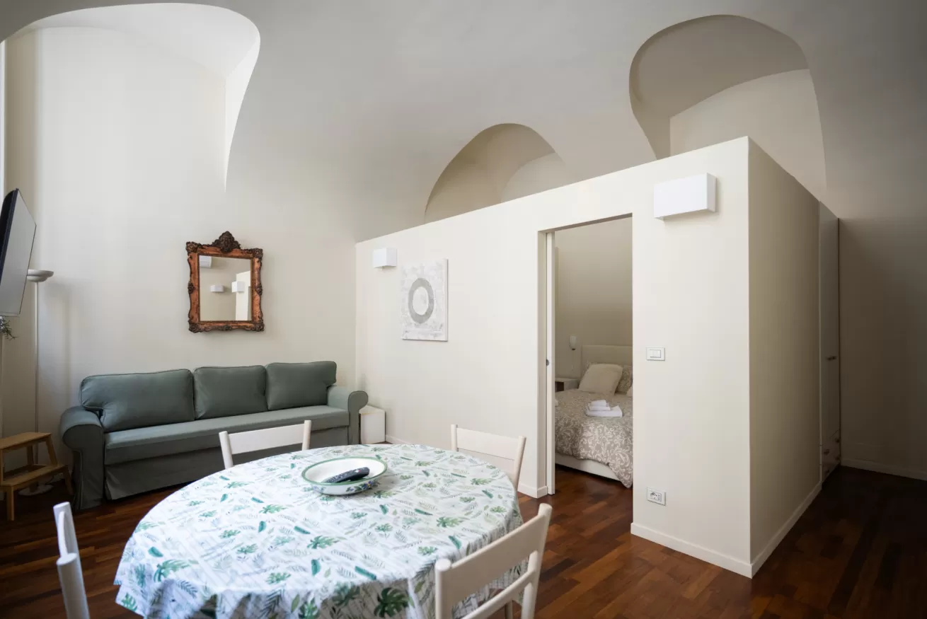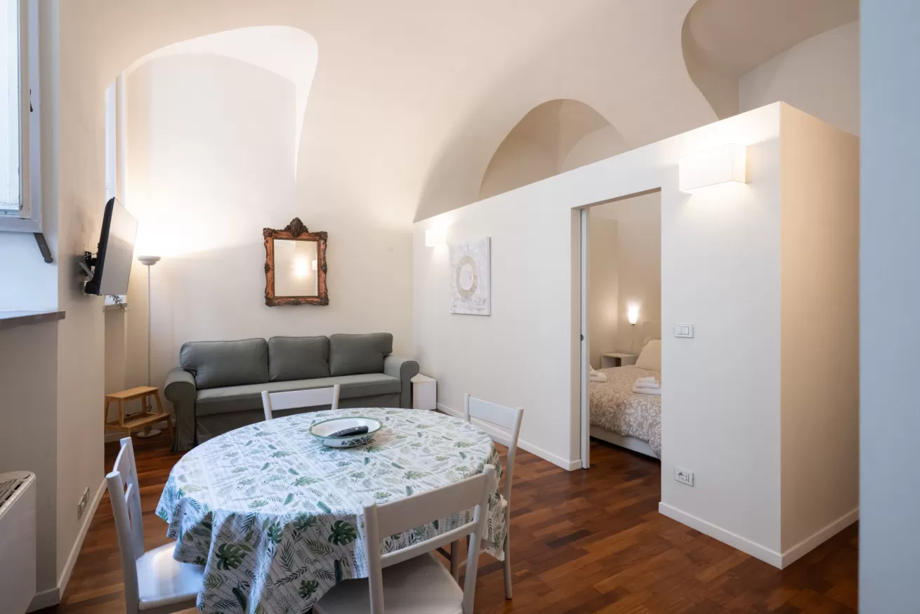 Each apartment can accommodate up to 4 people, with a maximum of 8 beds in total. They are composed of three spacious and bright bedrooms, ideal for ensuring comfort and privacy for all guests. The living room is furnished with a sofa bed, perfect for any extra guests or for moments of relaxation after a day of sightseeing.