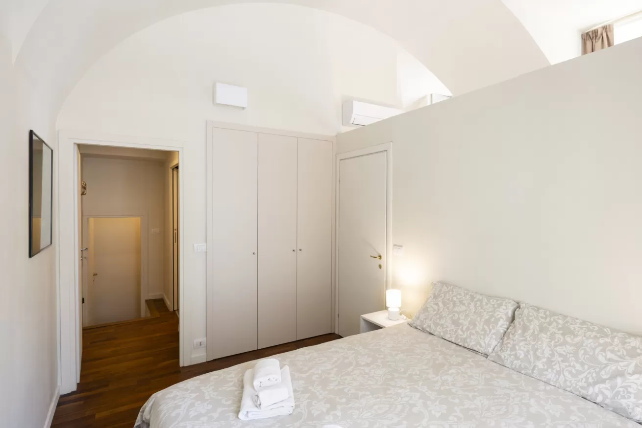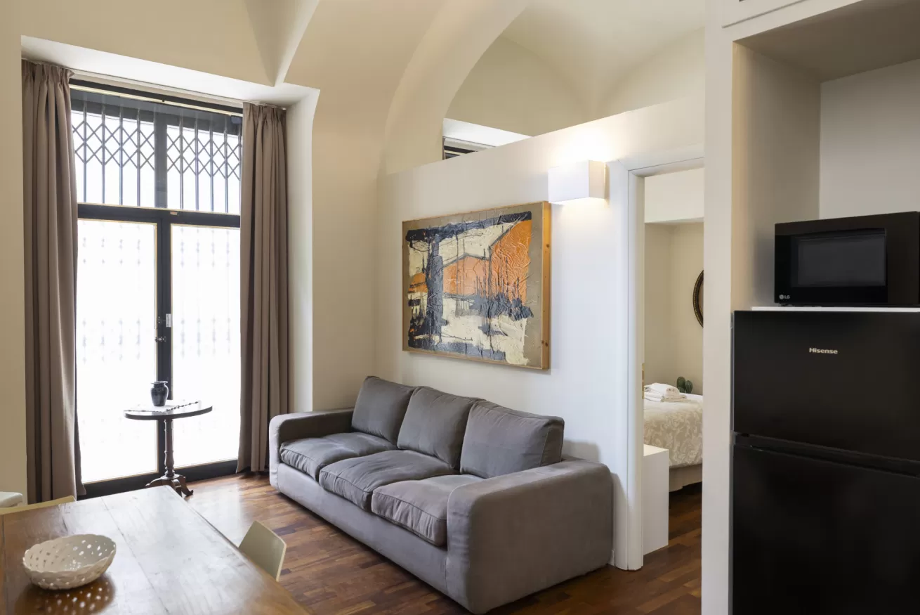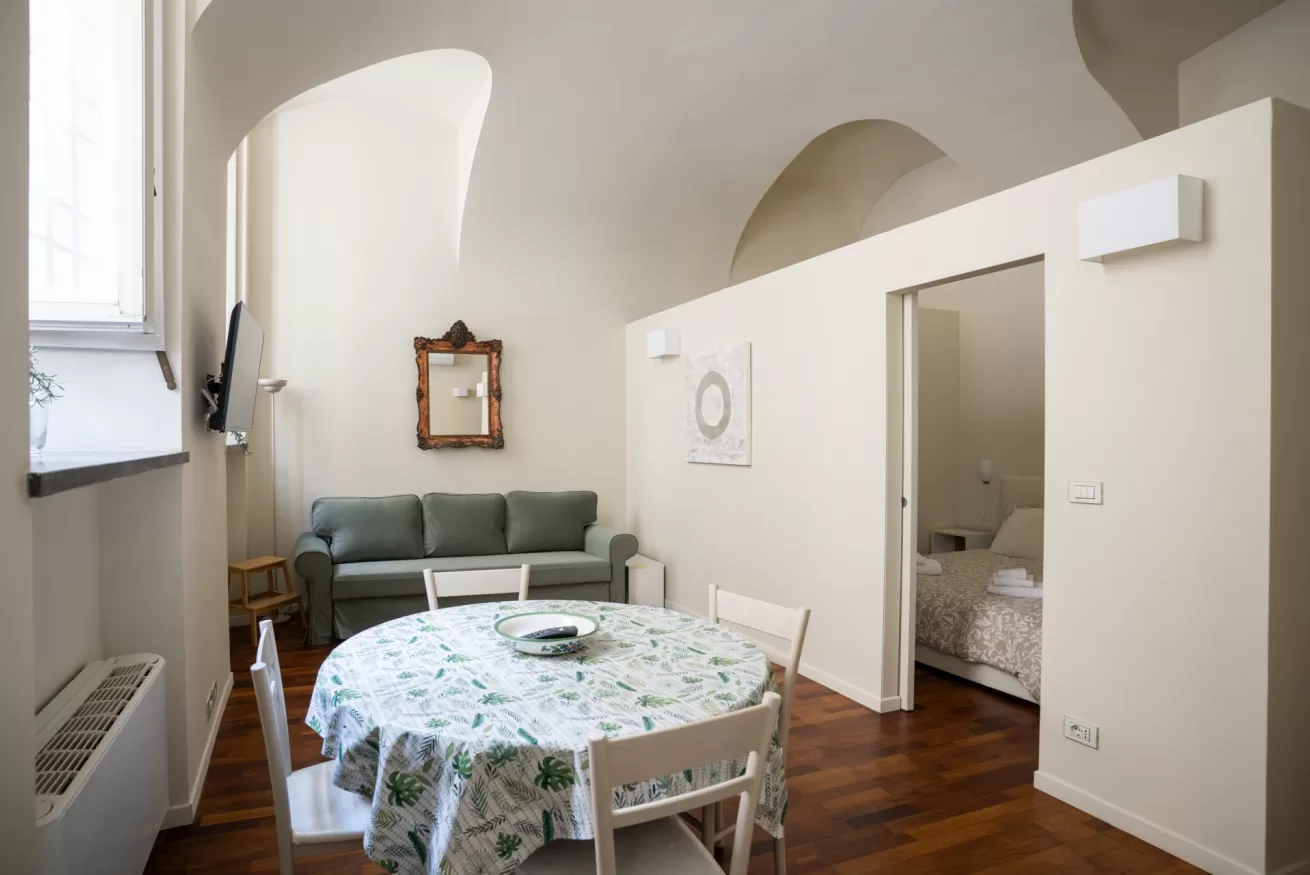 Each apartment can accommodate up to 4 people, with a maximum of 8 beds in total. They are composed of three spacious and bright bedrooms, ideal for ensuring comfort and privacy for all guests. The living room is furnished with a sofa bed, perfect for any extra guests or for moments of relaxation after a day of sightseeing.