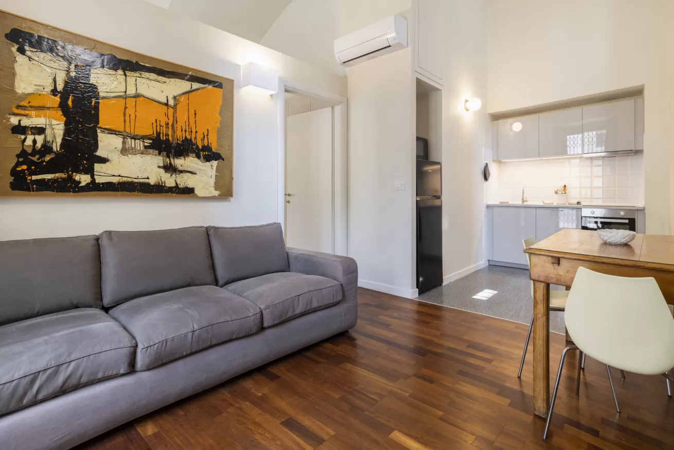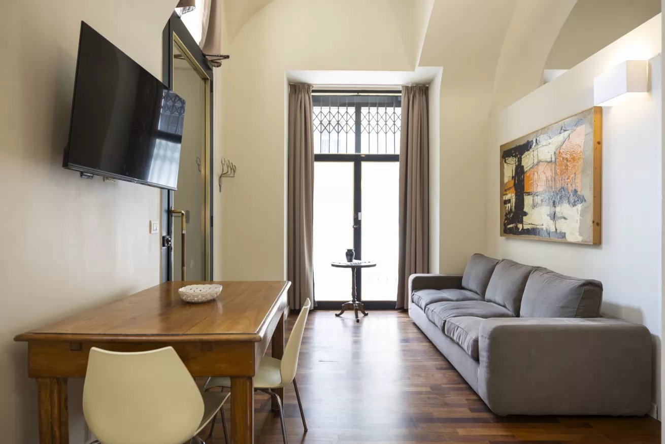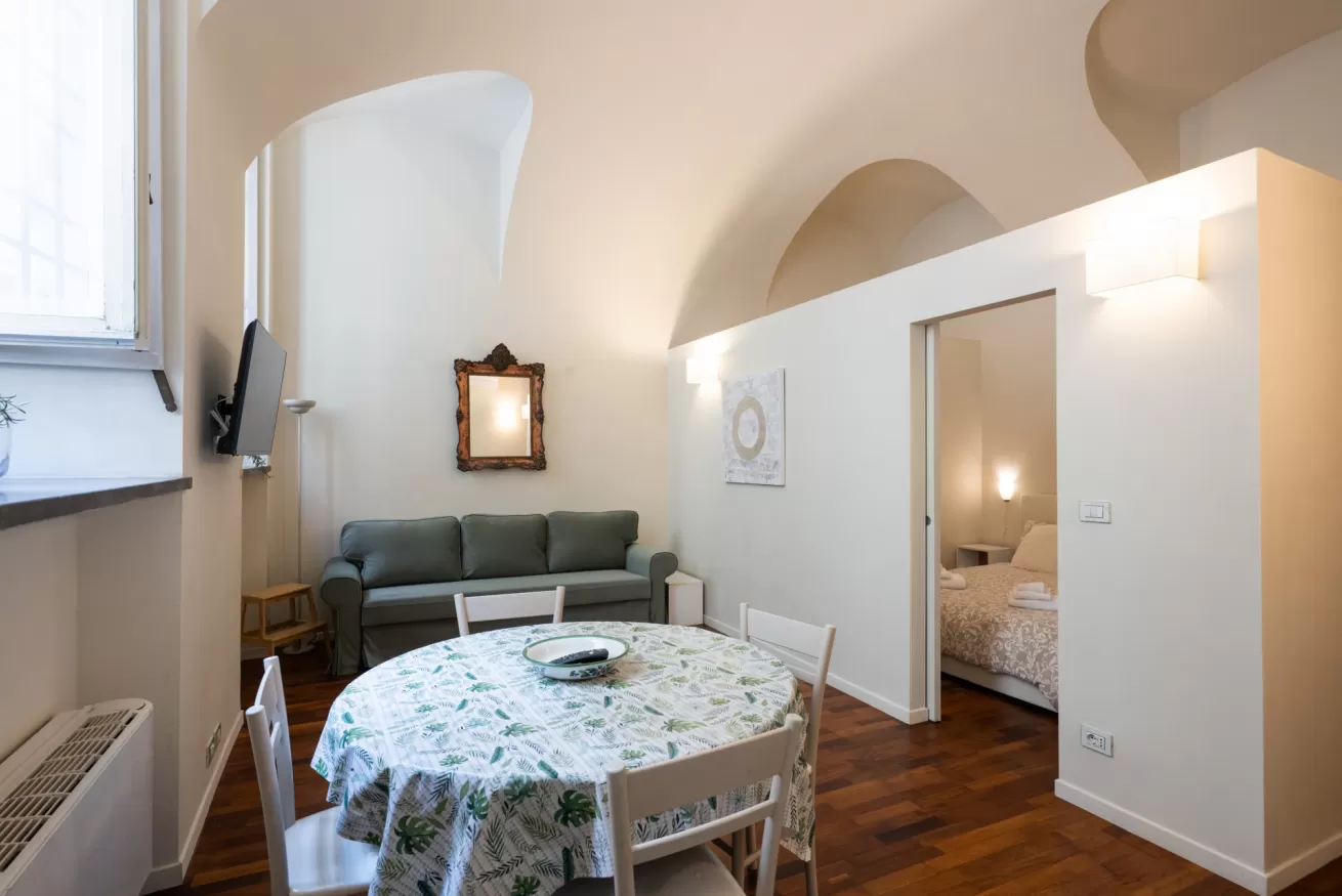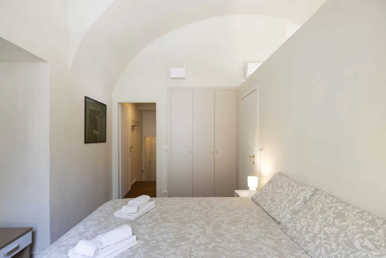 Each apartment can accommodate up to 4 people, with a maximum of 8 beds in total. They are composed of three spacious and bright bedrooms, ideal for ensuring comfort and privacy for all guests. The living room is furnished with a sofa bed, perfect for any extra guests or for moments of relaxation after a day of sightseeing.