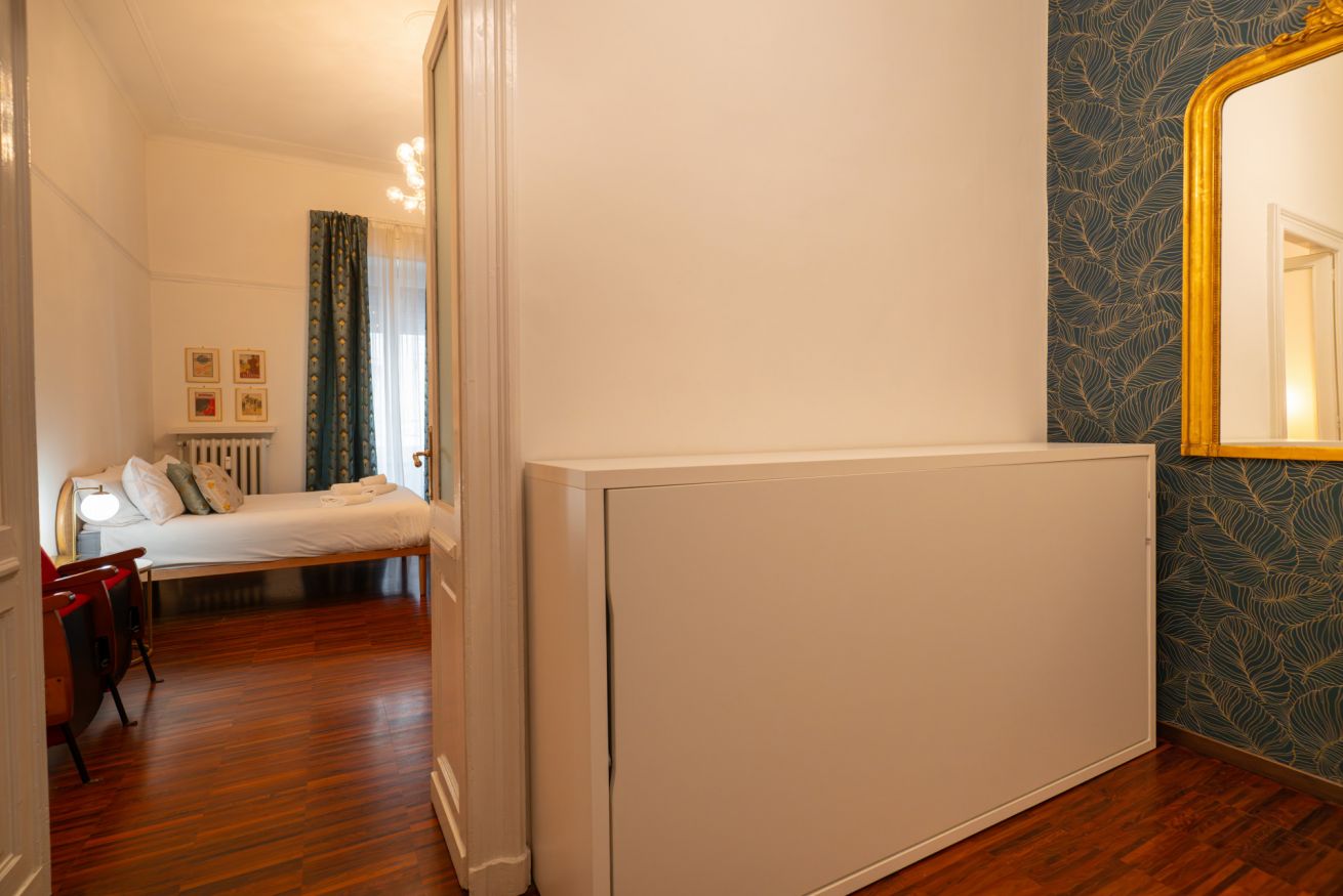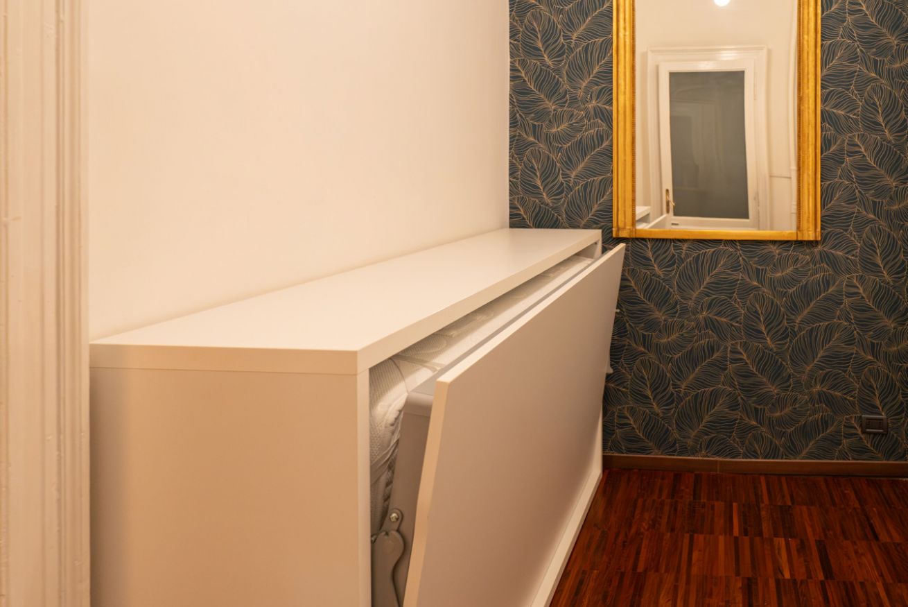 - Ampio ingresso con letto singolo a scomparsa (Murphy bed)