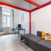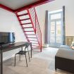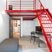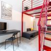 Le due camere da letto si trovano su un soppalco, creando un’atmosfera intima e originale. Ciascuna camera è dotata di due letti, offrendo in totale sei posti letto, ideali per famiglie, gruppi di amici o chi desidera condividere l’appartamento. La presenza di un balcone privato permette di godersi l’aria aperta e di ammirare la vivace atmosfera del quartiere, rendendo l’ambiente ancora più accogliente e luminoso.